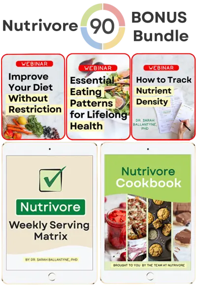Link Mail YouTube TikTok Facebook Instagram Threads Bluesky Pinterest Patreon Nutrivore90 Challenge Join the FREE Challenge Nutrivore Book Nutrivore Weekly Serving Matrix Nutrivore90 Bonus Bundle Nutrivore Meal Plans Nutrivore90 Community Brands I Recommend Real Plans Hungry Root code DRSARAH40 AirDoctor AquaTru Thrive Market Real Mushrooms Just Thrive Probiotic Step One Foods Nutrivore FREE Info Nutrivore90 FREE Challenge Nutrivore Newsletter Nutrient Densities of 8000 Foods Nutrivore.com Nutrivore Resources Nutrivore Book Nutrivore Guides Nutrivore Webinars Premium Nutrivore Newsletter Nutrivore Patreon Nutrivore Book Nutrivore Book Nutrivore MERCH Collegiate-Style Logo Nourishment, Not Judgment Periodic Table of Nutrients Nutrivore Ingredients Nutrivore Score Formula Help Keep Nutrivore.com Free for Everyone to Use and Ad-Free Support Us on Patreon Shop Digital Products Shop Merch
