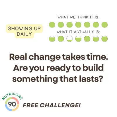 Nutrivore90 is a completely free, 90-day nutrition challenge designed to help you improve diet quality while quitting diet mentality. The next challenge starts January 5th, 2026. Sign up now to save your spot!