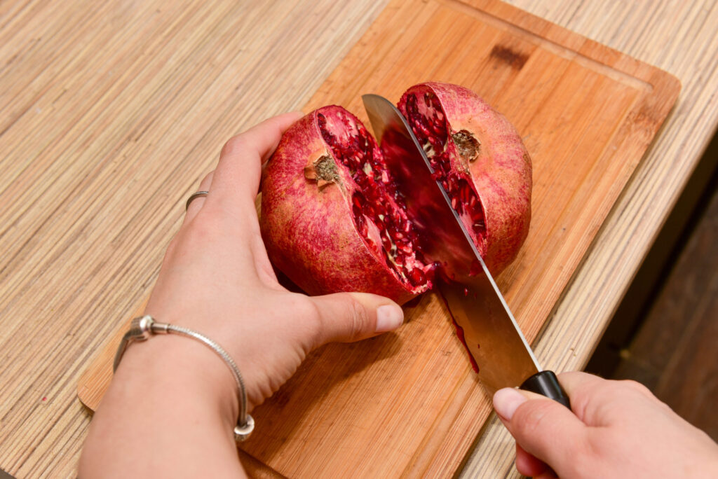 If the thought of de-seeding a pomegranate seems intimidating, here are a few suggestions to help you get out all that goodness! Before you start, remember pomegranates are messy and their ruby-red juice can stain!