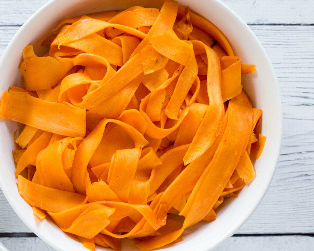 Sweet potatoes can even replace buns, be made into toast, and spiralized into noodles. Stuffed sweet potatoes make a fun, filling meal and sweet potato chips make a great salty, crunchy snack. There’s nothing that this delicious veggie can’t do! Another sweet potato product which is handy to have in your pantry is sweet potato noodles (a.k.a. japchae noodles or Korean glass noodles) – these are inexpensive and easy to find at your local Asian market.