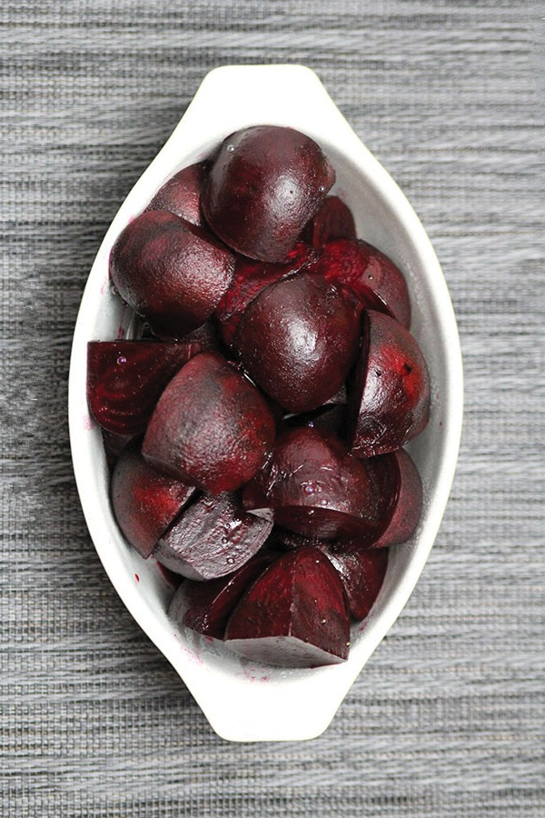 In addition to choosing beet varieties lower in geosmin (non-red options), analysis of mature beet roots revealed that peels contained six times the amount of geosmin compared to the bodies and cores of the veggie—so peeling beets is another way to help reduce the undesirable taste. Although peeling may lead to a decrease in antioxidant betalains you’re consuming, since they are also concentrated in the peel, some is better than none!
